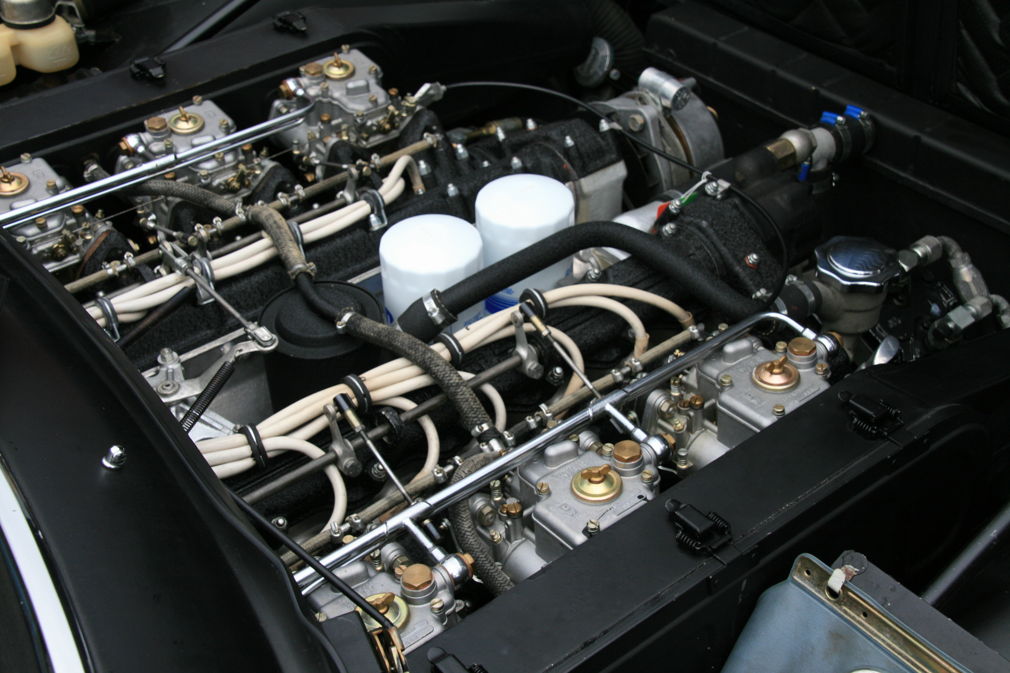 Under the hub of a Ferrari 365. 12 cylinders, 6 carburettors, 100% mechanic…
